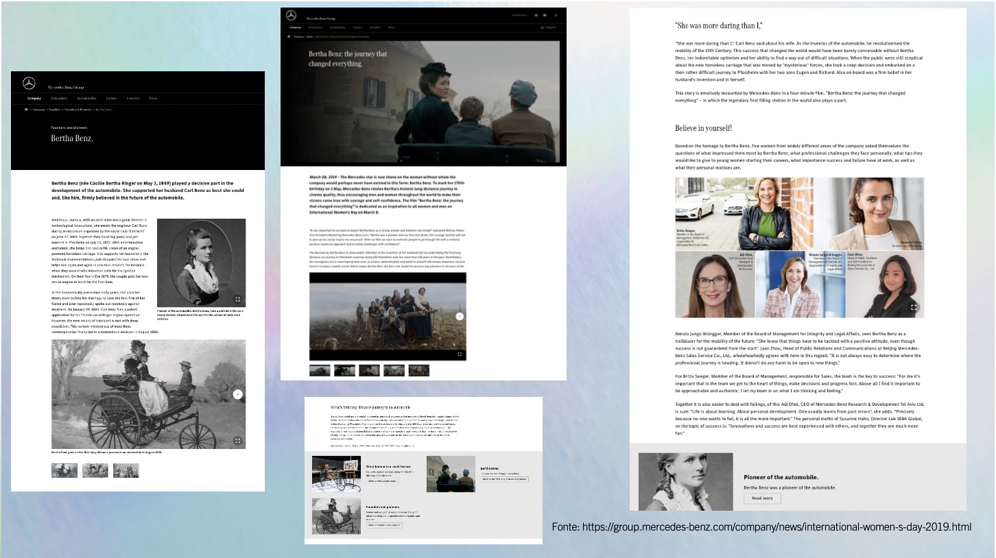 La brand sory di Bertha Benz (Mercedes nel 2019) e il coinvolgimento delle manager di Mercedes è esemplificativa di quanto evidenziato.