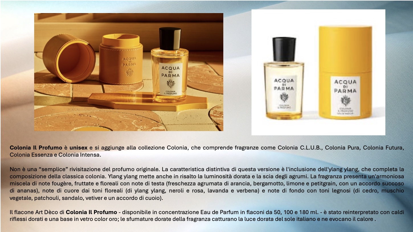 Sono queste le prime evidenze che mi sono venute in mente leggendo che Acqua di Parma ha lanciato una nuova fragranza: Colonia Il Profumo.