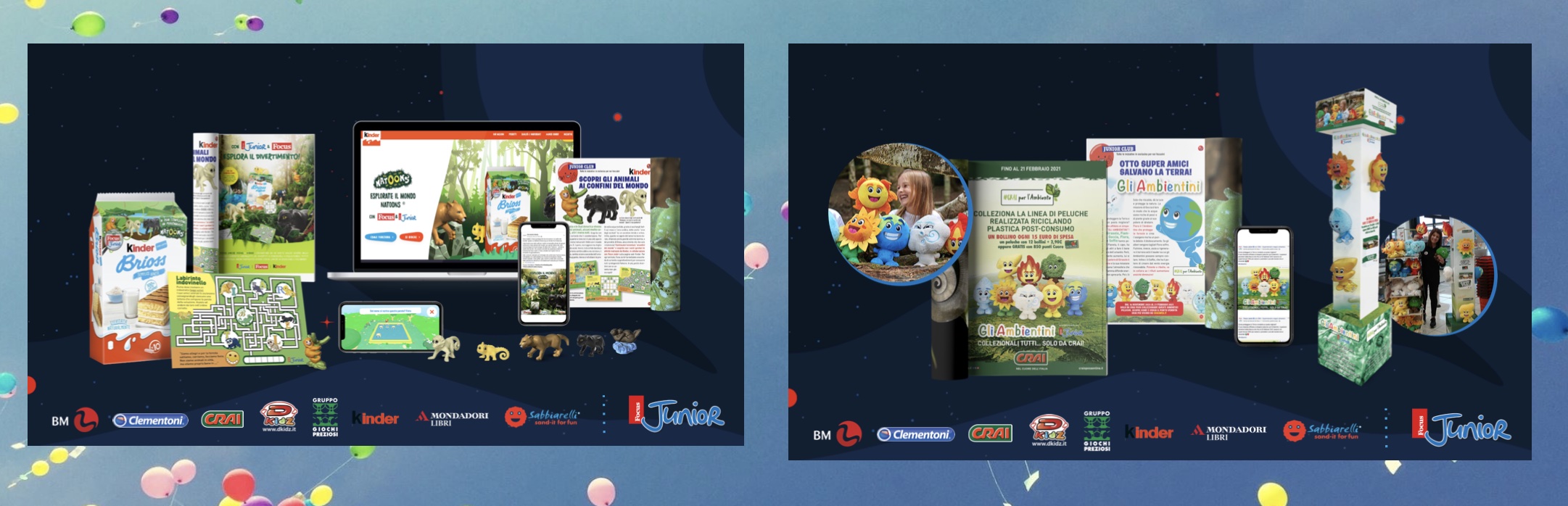 E’ quanto accaduto per: “Uova di Pasqua di Kinder Gran Sorpresa”, licensing con Ferrero, in cui alle sorprese di peluche dedicate al mondo dei felini (2018) si sono aggiunti quelle per i Cani (2020), per stimolare nei bambini la voglia di gioco e di scoperta; “Sfoglia la scienza” (2017), il licensing con Clementoni, “tangibilizzato” da una serie di libri-gioco con modellini, puzzle o speciali kit, anch’essi volti a stimolare la creatività e la curiosità di bambini e ragazzi dagli 8 ai 13 anni.